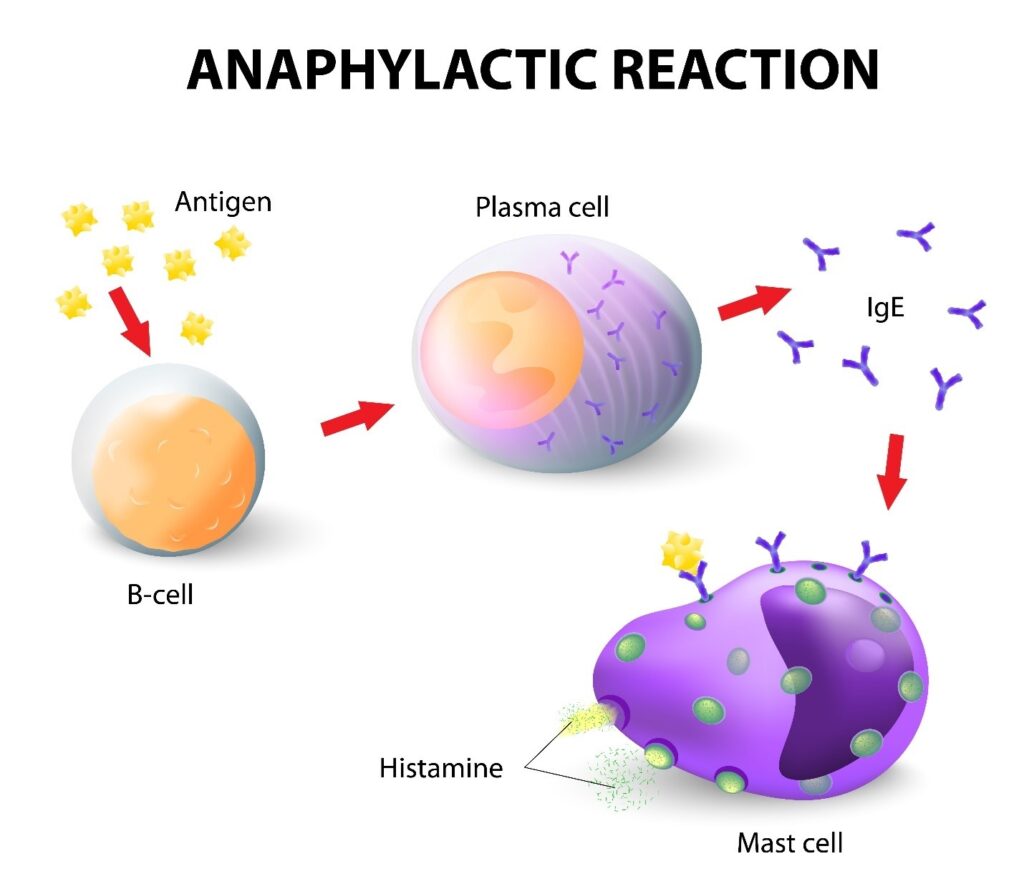 Whether a mild allergic reaction, such as a skin rash, or a severe allergic reaction leading to anaphylaxis and further complications, the immune system cascade that begins with antibodies attacking the allergen is the causing factor.